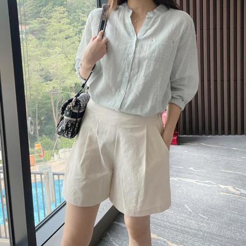 [루시다][루시다] [린넨100%] 민티 헨리넥 린넨 셔츠