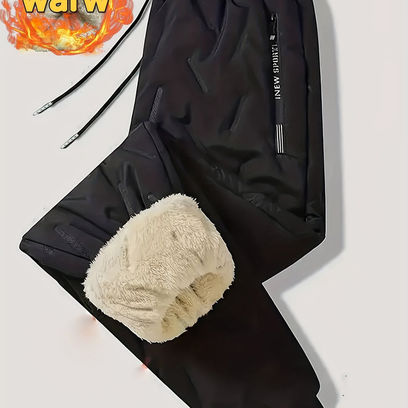 TEMU 남성용 플리스 안감 겨울 바지 - 속옷 같은 두꺼운 아웃도어 보온 트라우저, 가벼운 캐주얼 스키 및 추운 날씨용 스노우 팬츠, 비대칭 밑단 & 포켓 (벨트 루프 없음)