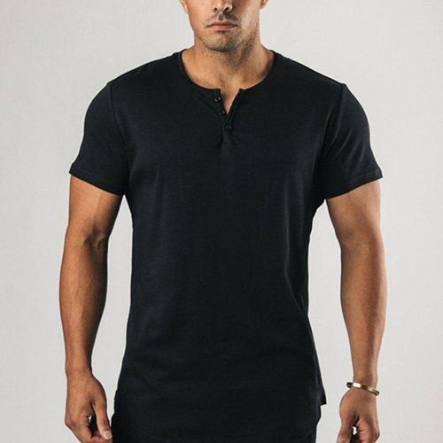 무지 헨리넥 2컬러 머슬핏 남성 반팔티셔츠 IS-ST21