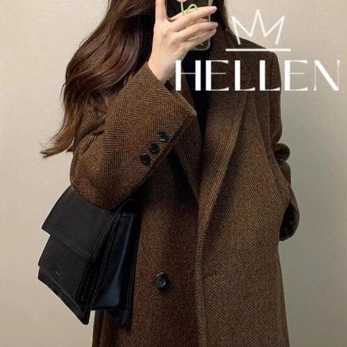 [헬렌]헬렌 헤링본 겨울 울라이크 카라넥 롱코트 구스카울라