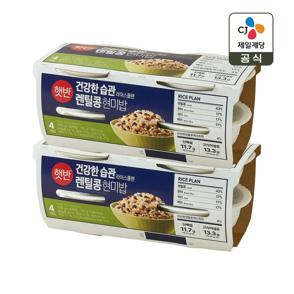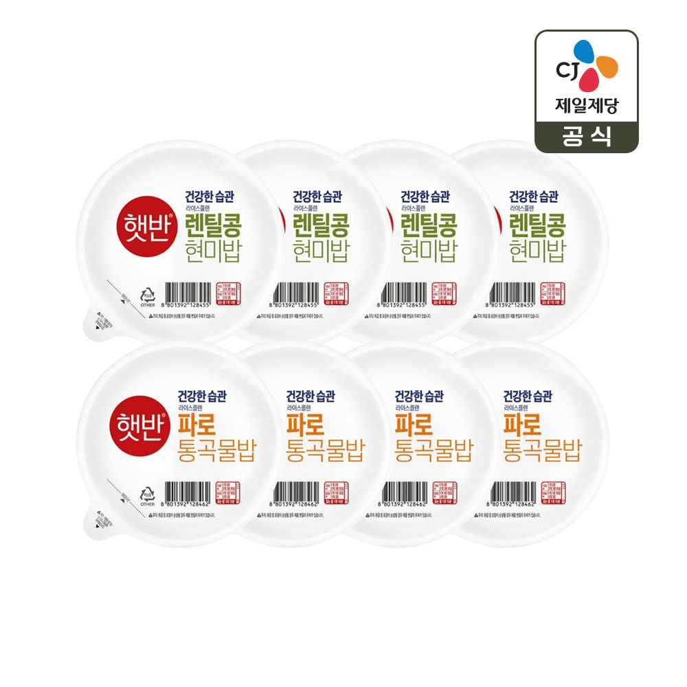 햇반 렌틸콩 현미밥 190g x4개+파로 통곡물밥 190g x4개