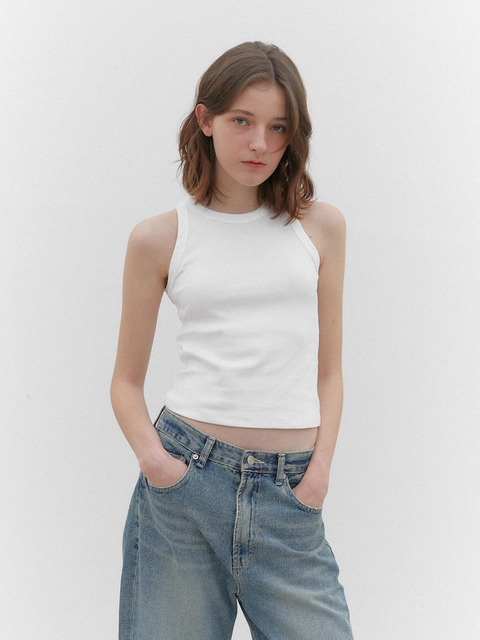 여성 플리츠 민소매 티셔츠 화이트(SW0DKS20931)