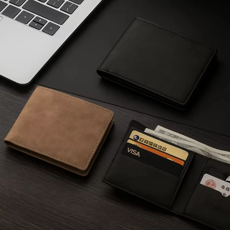 짧은 남성 지갑 슬림 클래식 동전 주머니 사진 홀더 작은 남성 지갑 품질 카드 홀더 서리로 덥은 가죽 남성 지갑