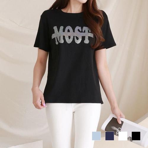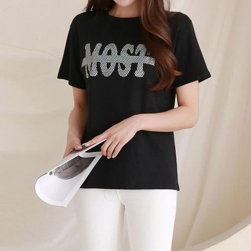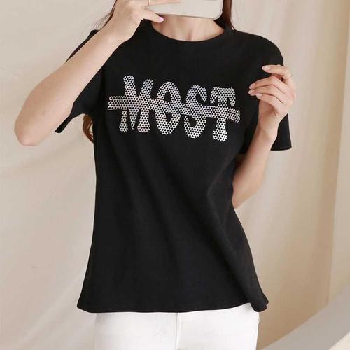 [셀러허브_여성트랜드패션]ONM 여자 여름기본티 코튼원단 홀로그램 프린트 반팔티