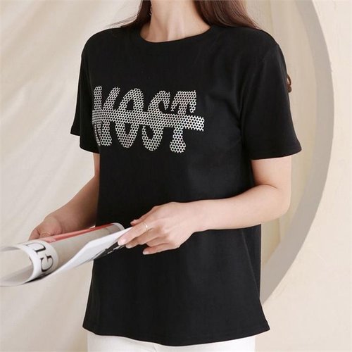 [오노마] ONM 여자 여름기본티 코튼원단 홀로그램 프린트 반팔티