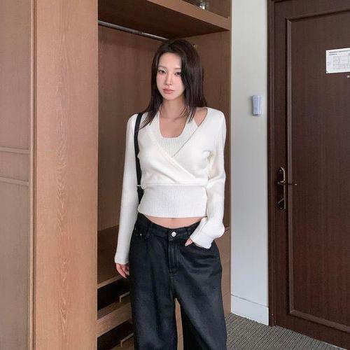[에이치플러스몰]투웨이 홀터넥 크롭 리본나시 니트가디건세트 여친룩