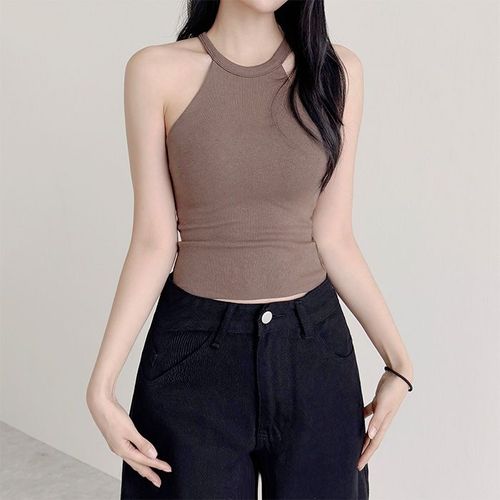 [에이치플러스몰]홀터넥 스트랩 세미크롭 민소매 나시 티셔츠 ST1861
