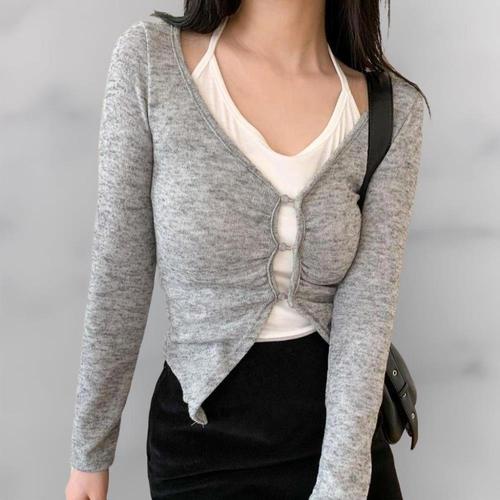 긴팔니트티 가디건 홀터넥니트 스러운 여성 가디 WFLMF3F