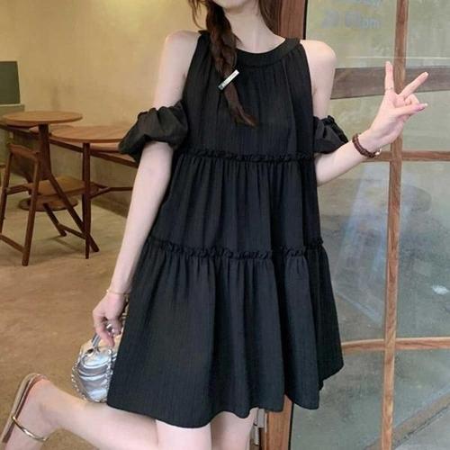 [엄지척]홀터넥 캉캉 원피스 a라인 핏 밴딩 소매_19957405_667501