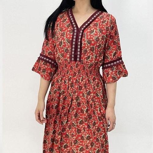 루비루 RB3044 홀터넥 플라워 나염 허리 스트링 롱 원피스