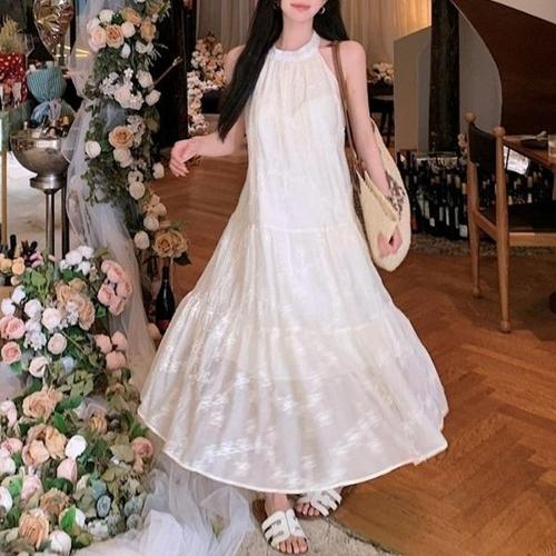 Asure 여름 여성 민소매 바캉스 원피스 롱 홀터넥원피스 A라인 비치