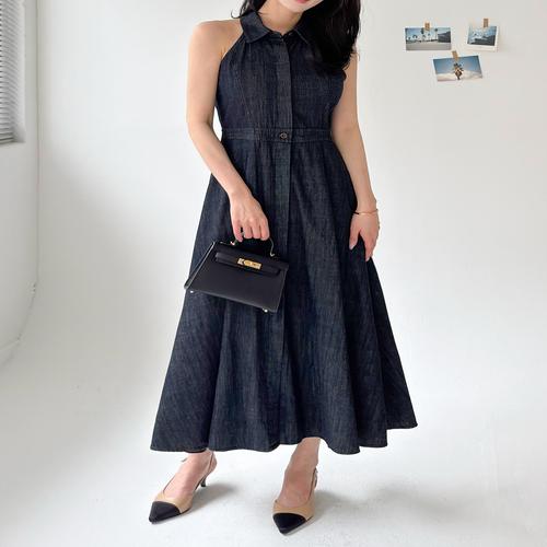 [모리스커밍홈]카라 홀터넥 데님 원피스_M2506OP611B