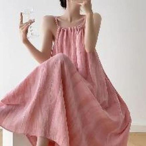 이너퀸 프리수 여성용 뒷태 백스트랩 홀터넥 민소매 끈 브라캡 캡내장 노브라 A라인 플레어 잠옷 홈웨어 원피스 백홀터스트랩원피스
