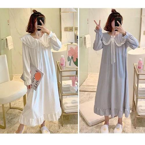 [HYD43L3I_56]여자 홈웨어 홈 레이스 원피스 카라 롱