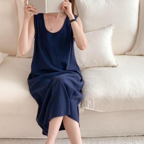 [신상오픈런]여성 빅사이즈 유넥 민소매 롱드레스 홈웨어