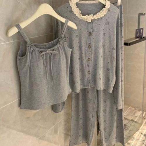 [신상오픈런]여성용 레이스 가디건 나시 팬츠 파자마 세트 홈웨어