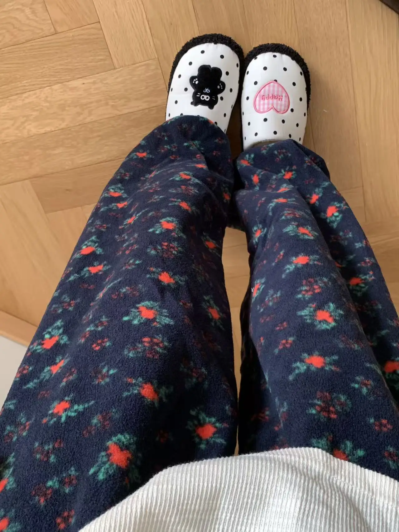 남성용 플란넬 파자마 바지 겨울용 산호 플리스 루즈핏 플러스 사이즈 커프스 두꺼운 보온 홈웨어 바지 하이웨이스트 엘라스틱 허리밴드