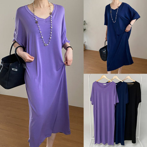 박시 반팔 롱 원피스 여성 홈웨어 빅사이즈 (WFIR32Q)