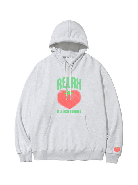 [이스케이프프롬] 릴랙스 토마토 프린트 후드티 화이트멜란지