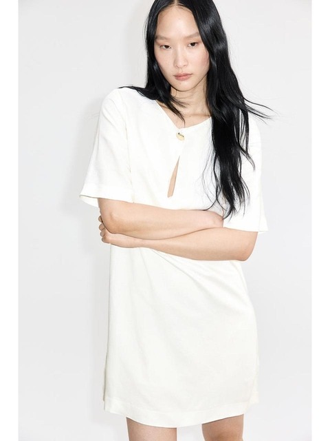 [에이치엔엠] 리넨 블렌드 튜닉 드레스 화이트 1295980002