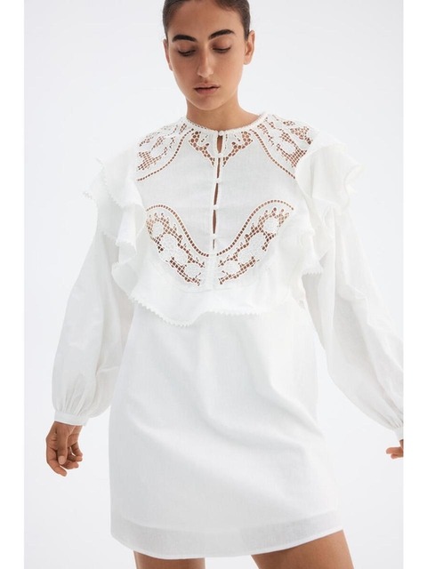 [페이리] 페이븐 스켈롭넥 린넨 미니원피스_화이트