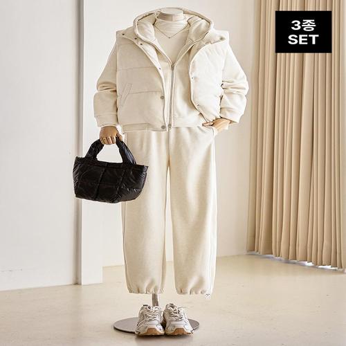 [커스텀에이블]패딩조끼 후드집업 트레이닝 3종세트_T2511SE044D