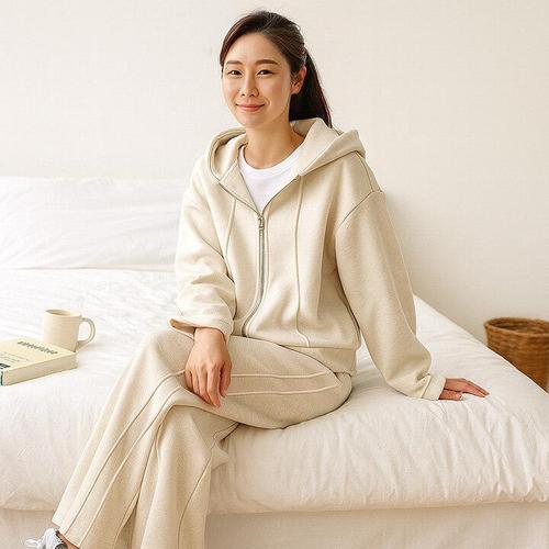 [보슈아][sado]여성 기모 트레이닝세트 투웨이 후드집업 라인와이드 바지FW1053W