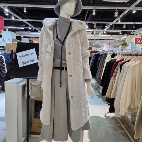 밀스튜디오 DP02 페이크 퍼 꽈배기 후드롱코트 LRCMUR105