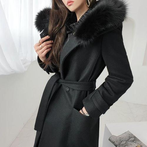 [벨리시앙]밍크퍼 후드 칼라 울 코트(2color) LC3403