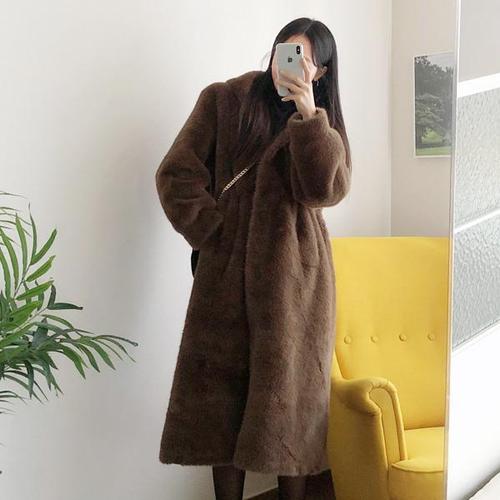 JoYouth 인조밍크 루즈핏 후드 롱 페이크퍼코트 겨울 2022