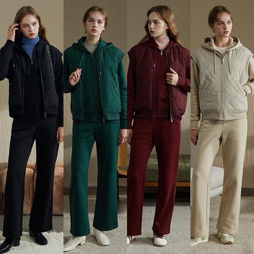 [비비드글램][3P세트단독구매가능] 웰론 패딩 조끼+후드 집업+와이드 팬츠 셋업 4color 겨울 기모 트레이닝