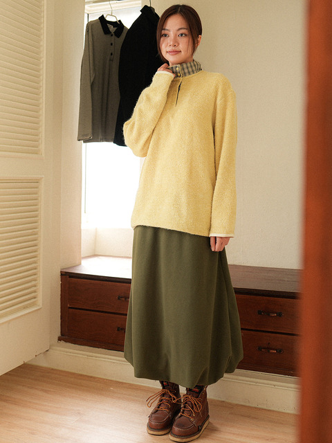 [코튼벨] 플리스 히든밴드 벌룬 치마 - Kakhi