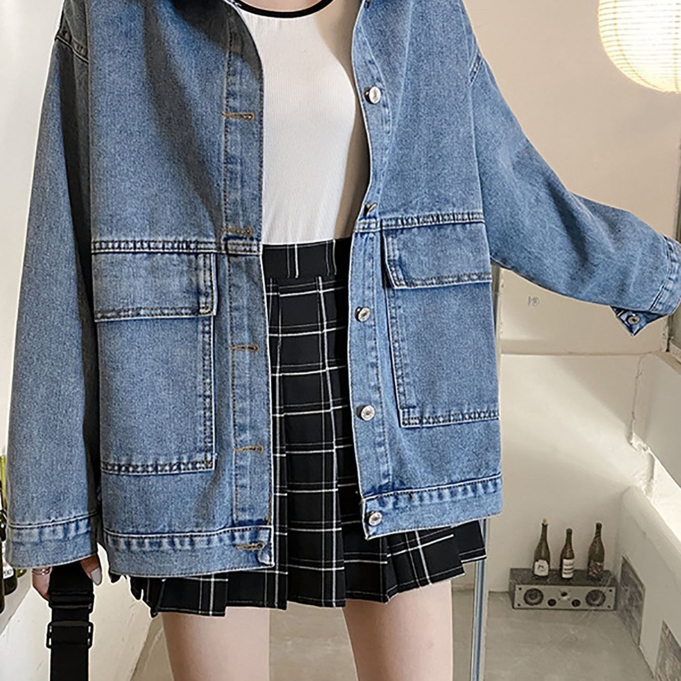 TEMU 여성 봄가을겨울 데일리 루즈핏 빅포켓 심플 날씬해 보이는 데님 재킷 코트 캐주얼 패션 부드럽고 편안한 긴팔 카고 청자켓