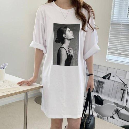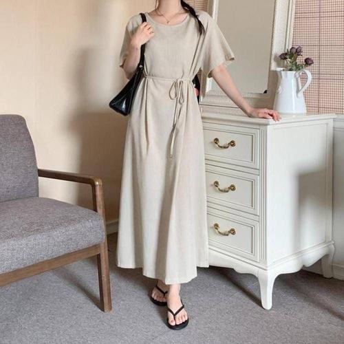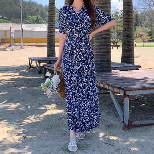 휴양지 쉬폰 반팔 뷔스티에 원피스 여름 롱니트 WFKPDQ6