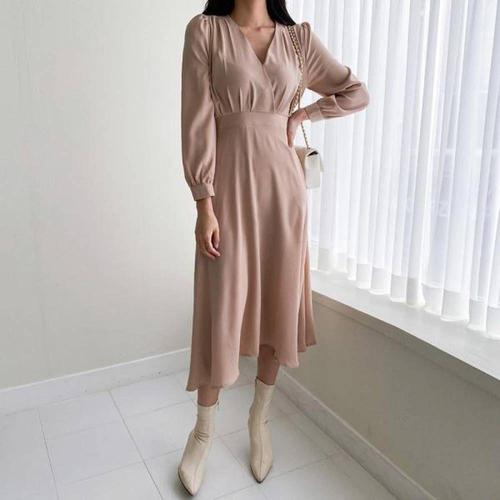 샵앤) 여성 V넥 밑단트임 휴양지 미디 원피스 WON-WDR-W8AF0F8