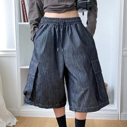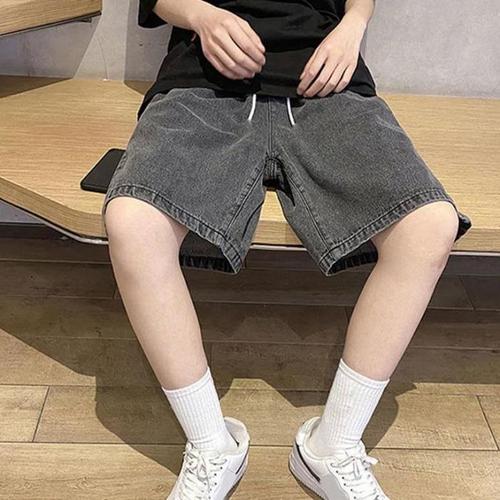 [BZJI73J9_4B]캐주얼 남성 데일리 와이드 흑청 데님 반바지