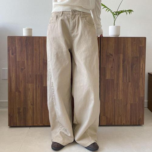 [다잇템]여성 옆면 단추 2WAY 코튼 와이드핏 흰색 팬츠