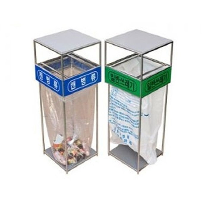 엄지척 분리수거함 스텐100리터 4구 분리수거대 투명비닐걸이 마대