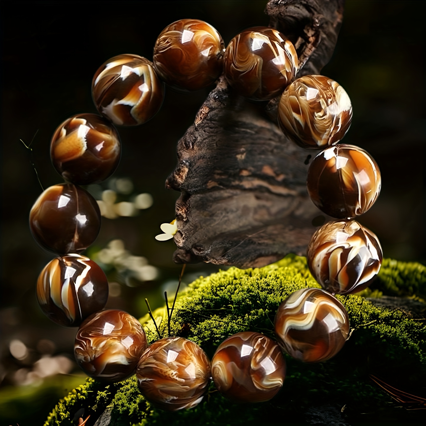 TEMU 10mm~20mm 천연 호박색 레진 화석 비즈, 부유와 행운을 위한 대형 원형 스트레치 팔찌, 발렌타인데이, 어버이날, 아버지의 날과 같은 다양한 행사에 적합