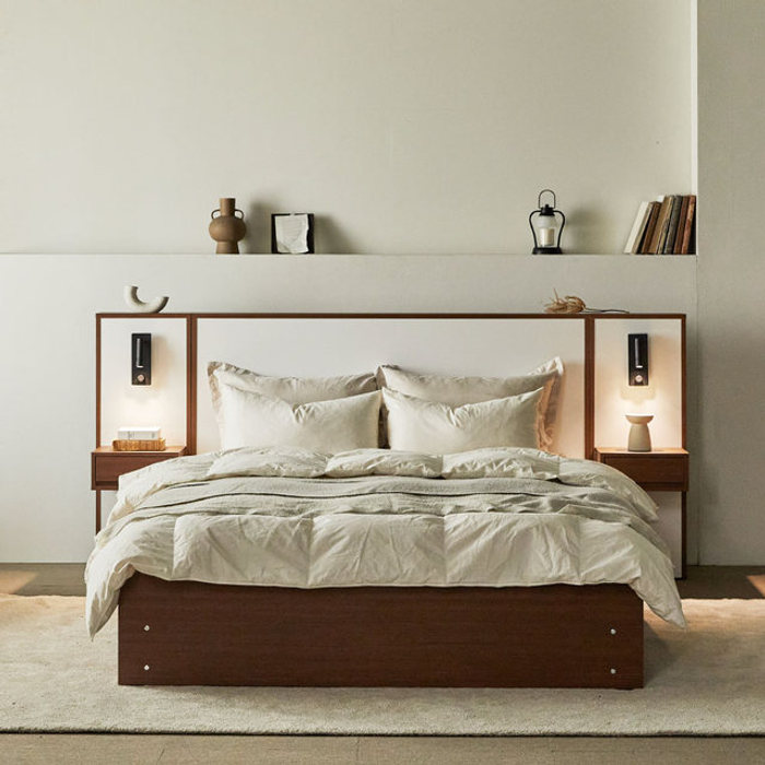 장인가구 [비밀특가] 장인가구 밤비 호텔 통서랍 수납침대 프레임 Q+협탁2 (높이 300)