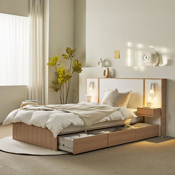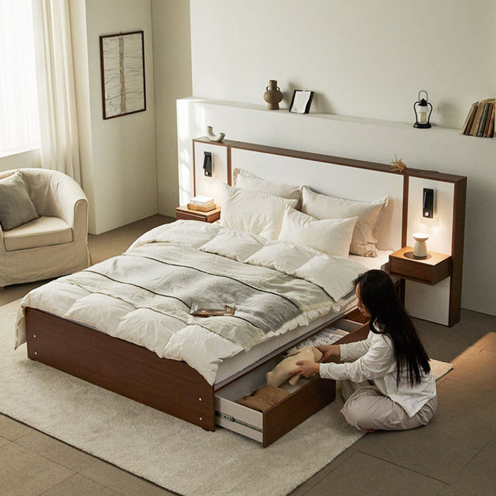 장인가구 [비밀특가] 장인가구 밤비 호텔 통서랍 수납침대 프레임 LK+협탁2 (높이 300,주문제작)