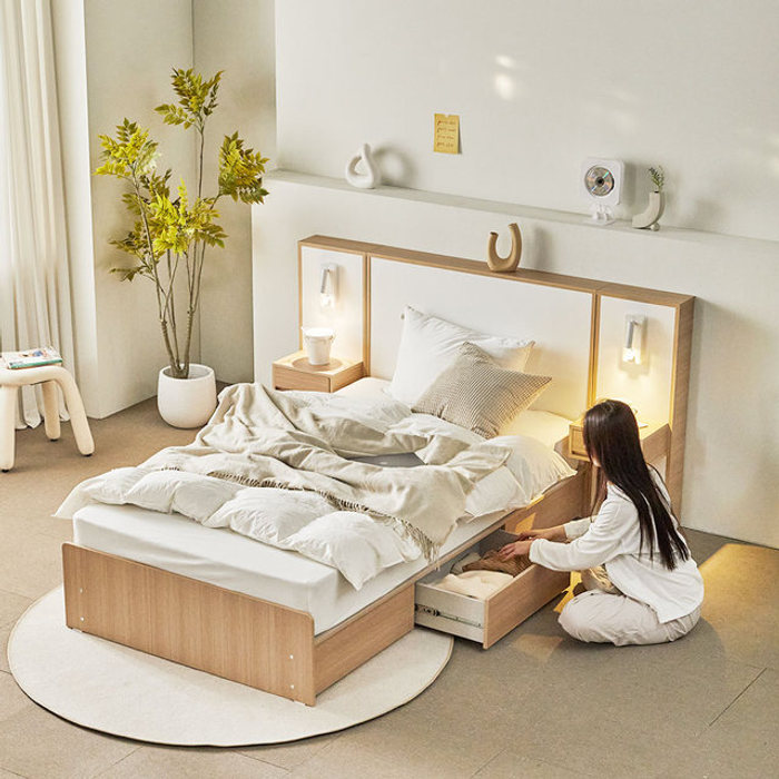 장인가구 [비밀특가] 장인가구 밤비 호텔 통서랍 수납침대 K+포켓+협탁2 (높이 300,주문제작)