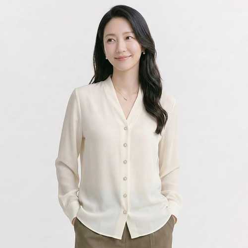 NB3070 세련미 무지 얇은 브이넥 긴팔 브라우스