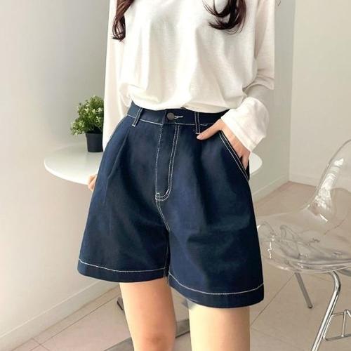 [엄지척]여성 A라인 스티치 포인트 4부 데님 숏팬츠 청반바지_20022029_667501