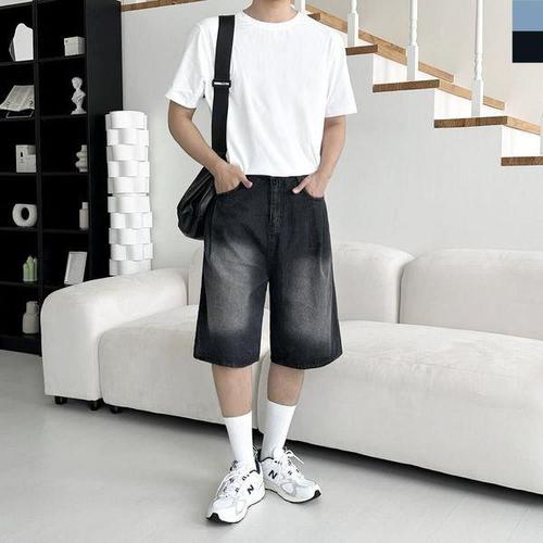 [에이비에프지]면 데님 와이드 5부 반바지 APZ5ZE36G