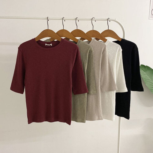 [에이치플러스몰]여성니트 니트 5부 반팔 여성 골지티 단정한 기본티 6색