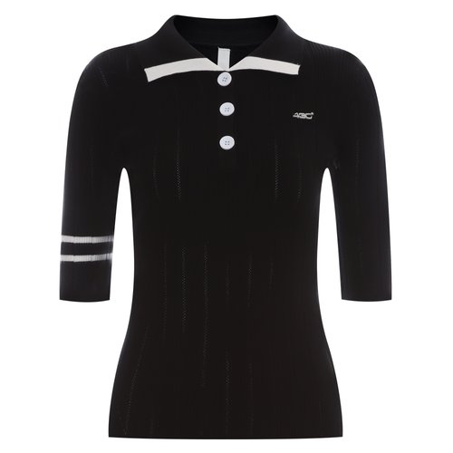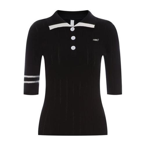 [샵앤]골지 5부 카라넥 단추반오픈 골프 레포츠 슬림핏 여성 반팔 니트 티셔츠 LB-WKN-408-블랙