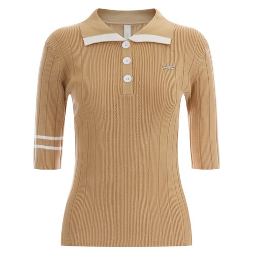 [샵앤] 골지 5부 카라넥 단추반오픈 골프 레포츠 슬림핏 여성 반팔 니트 티셔츠 LB-WKN-408-베이지