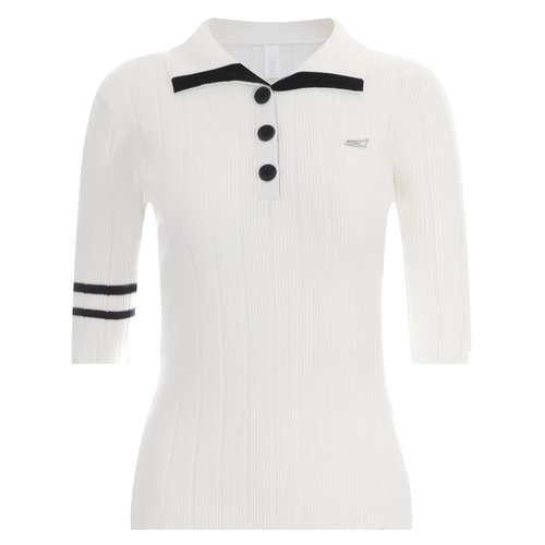 [샵앤] 골지 5부 카라넥 단추반오픈 골프 레포츠 슬림핏 여성 반팔 니트 티셔츠 LB-WKN-408-화이트
