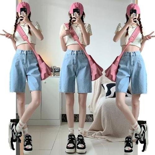 [엄지척]여성 하이웨스트 데님 반바지 5부 청반바지 와이드핏_20022852_667501